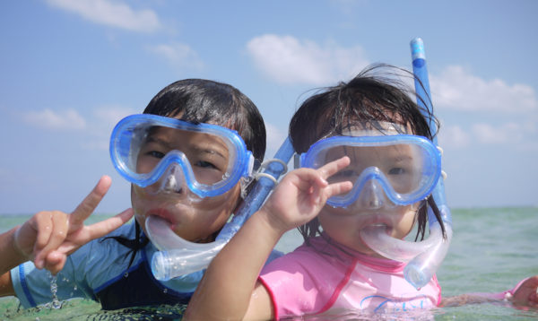 個人差はありますが、5~6歳でシュノーケリングデビューをする子が多いです。スイミングを習っていてある程度水に慣れているお子様は、あっという間に慣れてしまう事がほとんどです。ピカピカの一年生のH君は、顔付けが苦手と言っていましたが、まずは第一関門のマスクをしっかり装着できました^^マスクさえ付けられたらもう半分はできたようなものです。後は少しずつ少しずつ焦らずに慣れていけばだいたいできるようになります。なのでお父さん&お母さんは優しく見守って下さい(笑)。