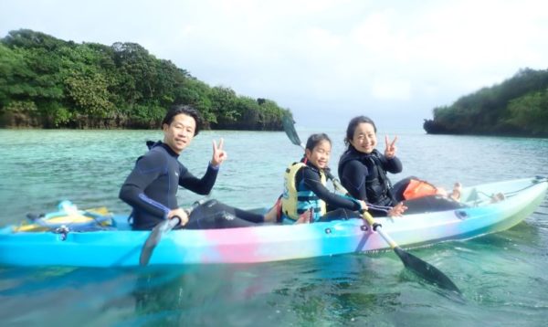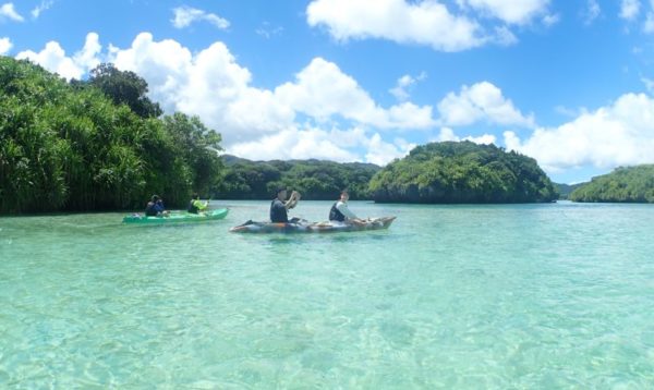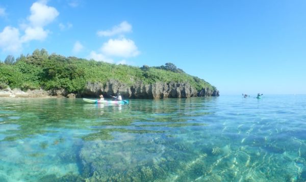 観光地になっている川平湾のグラスボート乗り場の隣にあるエメラルドビーチからカヤックに乗って出発します。潮位が高い時はボートでも行けますが、比較的浅い珊瑚礁の上を通っていくのでカヤックで行くのがベストです。各シュノーケリングスポットまでは、カヤックで10~15分程で行くことができます。カヤックで移動中はウミガメに会えることもあります。また両スポット周辺は透明度が高いので、風が穏やかな時はカヤック上からでも海中世界を覗くことができます。