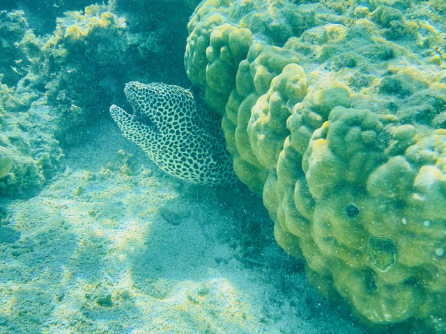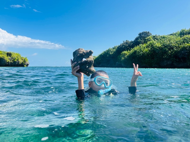 カサゴ、ウツボ、ウミウシ、コブシメなどはシュノーケリングでいつも出会える生き物ではありません。だからこそ毎日シュノーケリングをしても飽きないんですよね~♪ちなみに水温が下がってくるとウミウシと出会う機会が少し増えて来ます♪時々マニアックなゲストさんからウミウシのリクエストを頂くことがありますので(笑)。。なのでシュノーケリングでウミウシを見てみたい方は、冬の時期に遊びに来て下さい^^