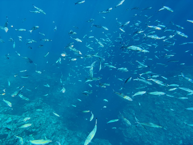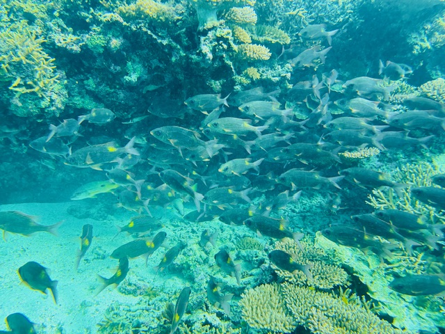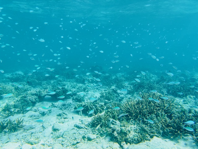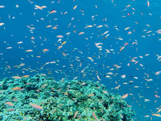 冬季シーズンの見所といえば抜群の透明度☆北風が強すぎると困るのですが、川平湾エリアは北風になると外洋から新鮮な海水がたくさん入ってくるので透明度がより高くなります。そしてお魚も変わらずたくさん見ることができるので、天候が悪過ぎなければ冬季シーズンもシュノーケリングを楽しむことができます♪なので冬季シーズンは荒波の中、無理にボートに乗ってシュノーケリングをするよりも大きな波が入って来ない浅場エリアでのシュノーケリングがお勧めです。