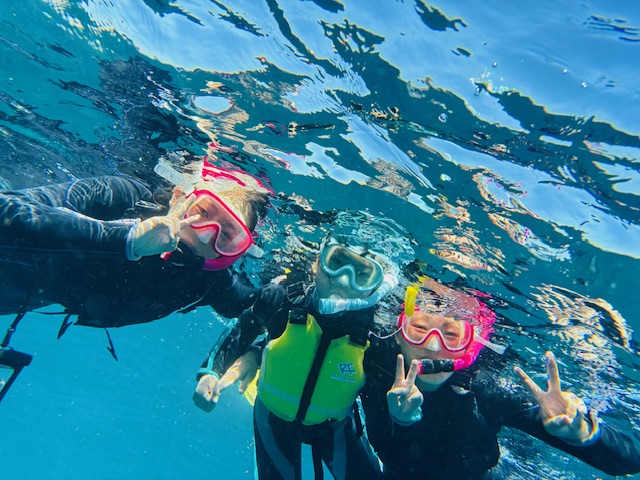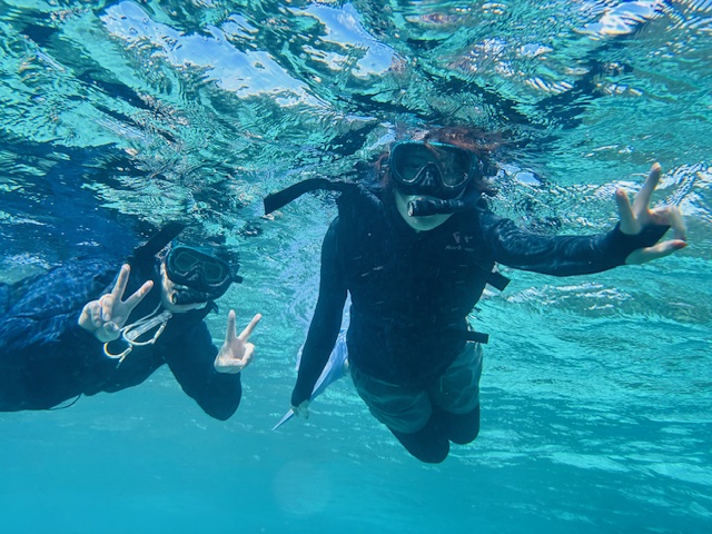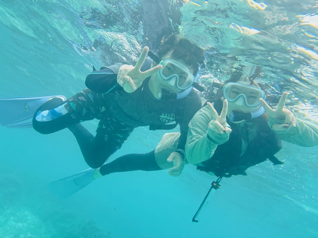 11月になっても水温は27℃ぐらいあるのでウェットスーツを着ないでシュノーケリングを楽しむ方が今のところ多いかな^^その時の天気&個人差はありますが、北風になると海から上がった後が肌寒く感じるので寒さに弱い方はウェットスーツを着てシュノーケリングを楽しみましょう!ウェットスーツを着れば無敵状態で快適にシュノーケリングを楽しむことができますよ~^^