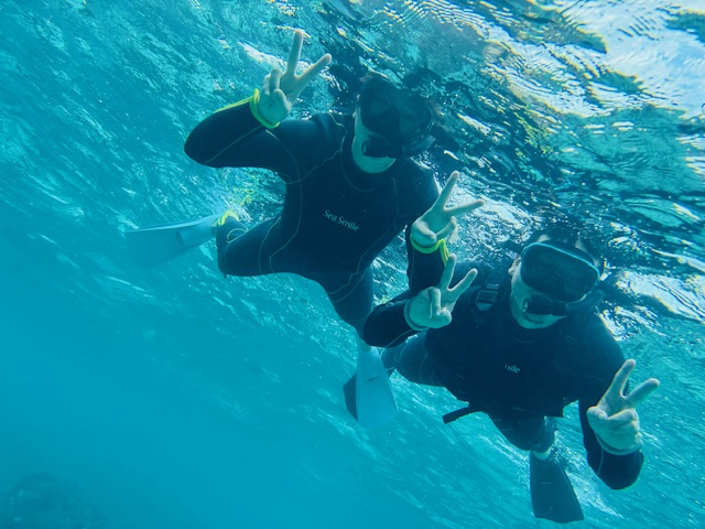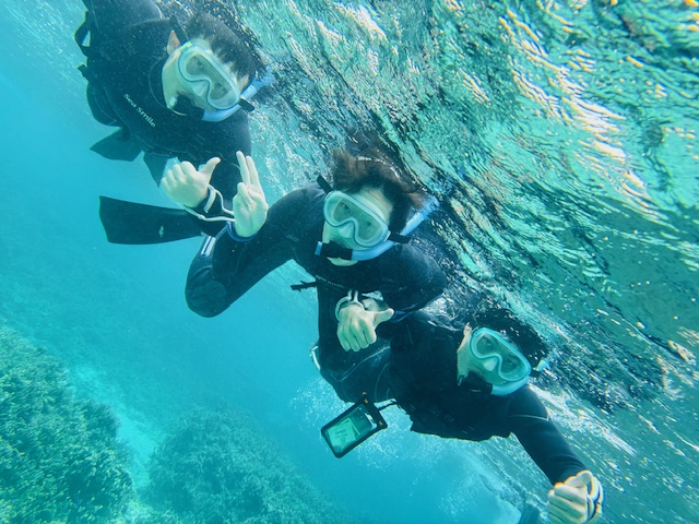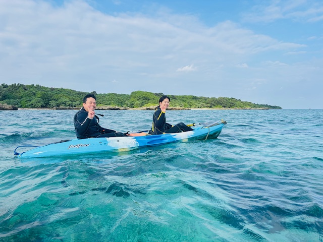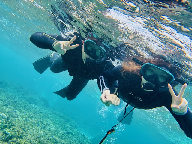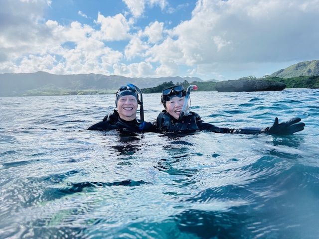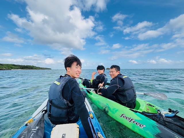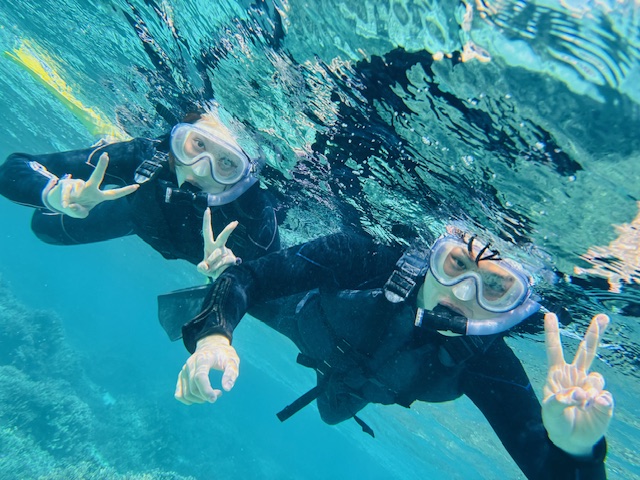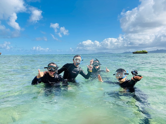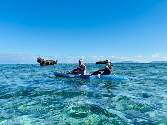 これからの時期は風がある中でのツアーが多くなって来るので、より少人数制(4名)を意識してシュノーケリングやカヤックを開催しています。なので貸切ツアーでのんびり楽しめる事が多いので、前向きに遊びに来て下さい^^ウェットスーツを着用すればまだまだ快適にシュノーケリングを楽しむことができます♪