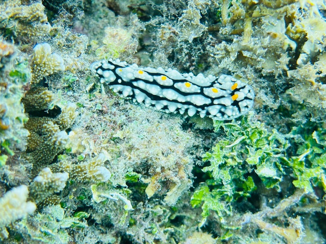 お魚の名前は8割方すぐに出て来ますが?ウミウシの名前は勉強し直さないと出て来ません(苦笑)。。夏場はほとんど見かけることがないウミウシ(殻を持たない貝の仲間)ですが、冬場はちょくちょく見かけるようになります。個性的なルックスをしている個体が多いので、紹介すると驚くゲストさんが多いです^^また冬場の時期はより透明度がUPするので、抜群の開放感の中シュノーケリングを楽しむことができます。お魚の数も夏場とほぼ変わらずたくさん見る事ができます。