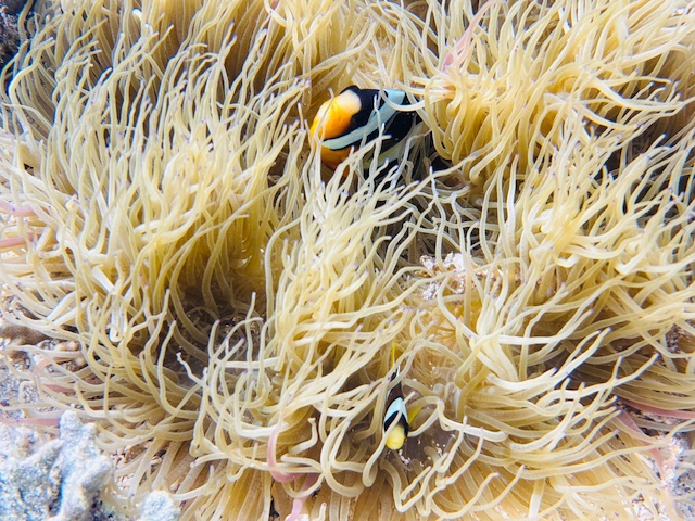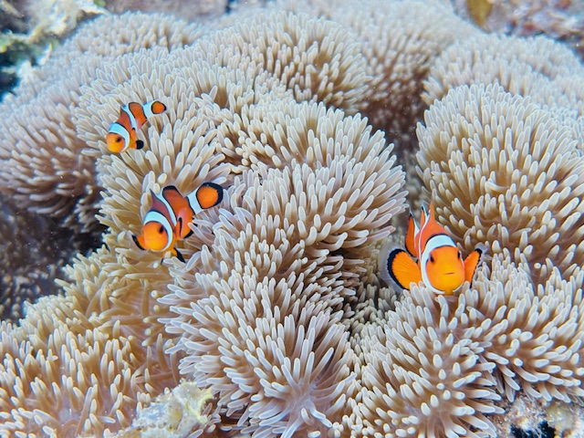 ゲストさんから冬はお魚が少なくなっちゃうんですか?と聞かれることもありますが、夏とほぼ変わりません^^強いて言えばクマノミちゃんたちが、少し引きこもりがちになるのと熱帯魚の赤ちゃんたちを見かけることが少ないぐらいです。その代わりに夏はほぼ会うことがないウミウシ(殻を持たない貝の仲間)に出会えることもあります。