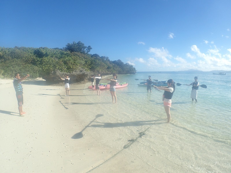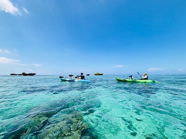 川平タバガーのシュノーケリングスポットまではカヤックで移動します