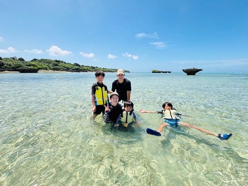 シュノーケルができるできないの個人差は若干ございますが、できないお子様については浮輪に乗って箱メガネでお魚を見て頂く形をとっております。もちろんお父さん、お母さんがしっかりサポートできることが参加の条件になります。水を怖がるお子様は、事前にお風呂やビニールプールなどで水に顔をつけたりして、少しでも水に慣れておくだけでもぜんぜん変わってきます。何よりも水に慣れるということが一番大切です。下記の「石垣島で子供も楽しくシュノーケリング」をぜひ参考にしてみて下さい。